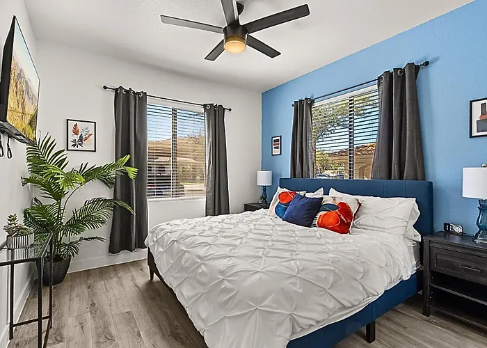 Family Fun Asu Football Stay, 2Br, Pool & Spa- 1001 Tempe apartment is located in Tempe, 2.5 miles from Esteban Park, and pampers guests with a hot tub. Wi-Fi and complimentary private parking are also available at this 104 ft² apartment.